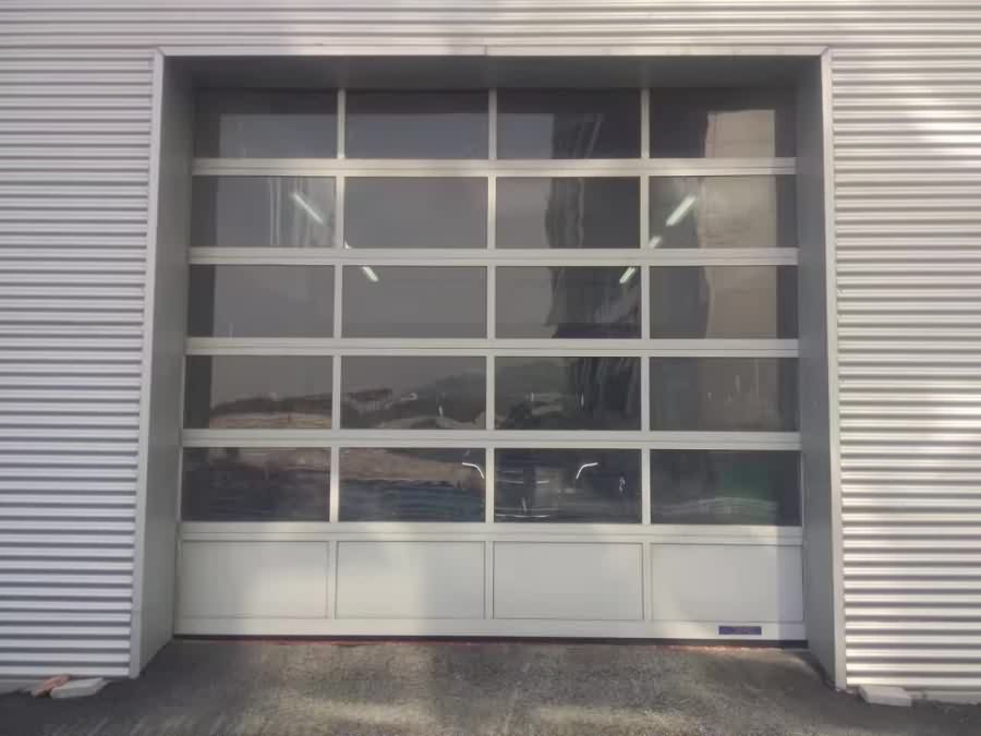 透視門是提升門的一種,門體是由鋁合金門框、透明材質門板和導軌組成。開啟時門扇面板沿導軌直向上提升至洞口上方,或平翻置天花板下方。用于需要采光的出入口,如展廳、商鋪、4S店等
