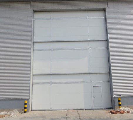 多段重疊垂直提升門常用于門洞較高,但內部安裝空間不足的工業廠房中,因為可以分成多段門板上升,然后重疊一起,所以不需要升到內部去,可以解決內部安裝空間不足的問題。