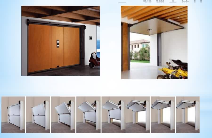 無軌車庫門是翻板車庫門的一種,所有機(jī)械裝置、驅(qū)動裝置都隱藏在門體上方及左右兩側(cè),開門機(jī)轉(zhuǎn)動帶動機(jī)械移位,門體上方開啟。無軌車庫門安裝便捷,因為沒有彎軌和牽引軌道,車庫內(nèi)整潔,美觀,特別適用于車庫條件有限,豪華裝修的高端用戶